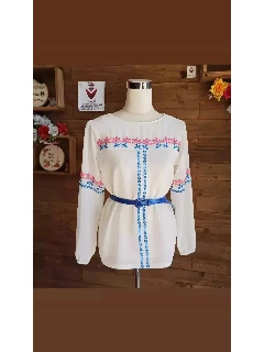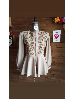 جمبسوت قماش صيفي تطريز يدوي على الاكمام - قبة جاكيت - سحاب خلفي - ارجل البنطلون واسعة فضفاضة